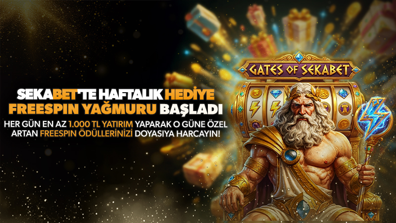 Haftanın her günü artan freespin değerleriyle her gün tek seferde en az 1.000 TL yatırım yaparak o güne özel freespin ödüllerinizi Pragmatic Play’in Gates of Sekabet oyununda doyasıya harcayın!
